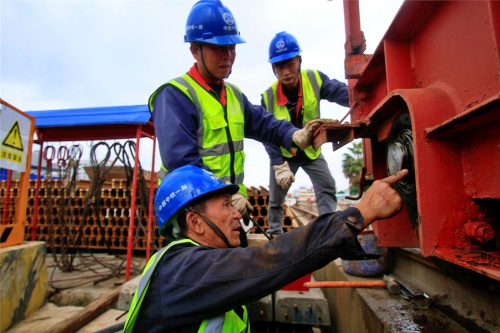 综合队队长樊小兵介绍说,地铁项目机械班的任务十分繁琐,涵盖溜槽机具加工安装、机械设备维修保养、施工接线接电、铺轨工装改造维修以及场内大大小小几十种机具配件的加工生产等。另外,在遇到机械设备故障时,更是要保证24小时随叫随到。