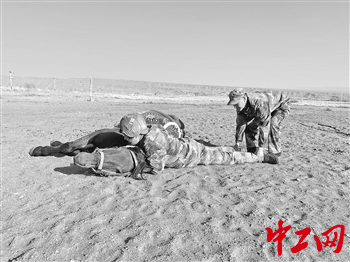 尼牙孜·黑牙孜在纠正民兵的卧倒姿势。马安妮 摄