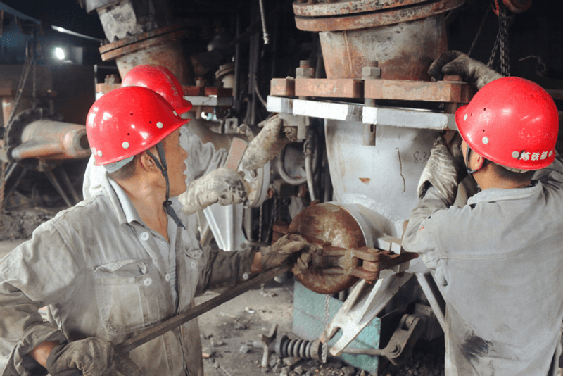 开堵口、清渣铁、挡砂坝、顺利出铁,离不开各班员的互相配合,一个完整的流程需120分钟时间。在这样工作流程和环境下,极其考验人的意志,特别是在夏季高温,更是让人难以忍受。