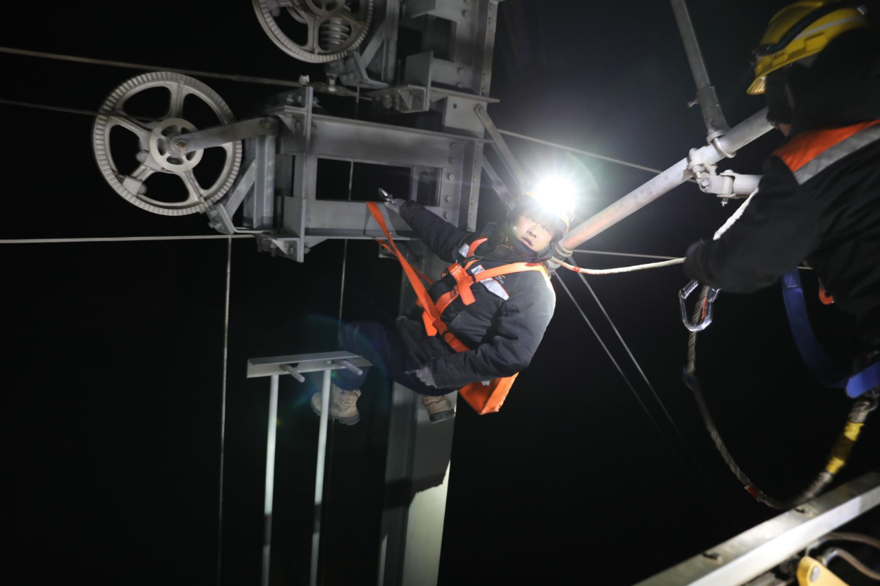 “小伙子挺抗冻啊!”登上作业平台之前,师父一边鼓劲儿,一边帮李思阳拉紧了外层大衣的拉链。自去年沈佳高铁白敦(长白山-敦化)段开通以来,每天夜里,他们都需要乘坐轨道车检修接触网设备。
