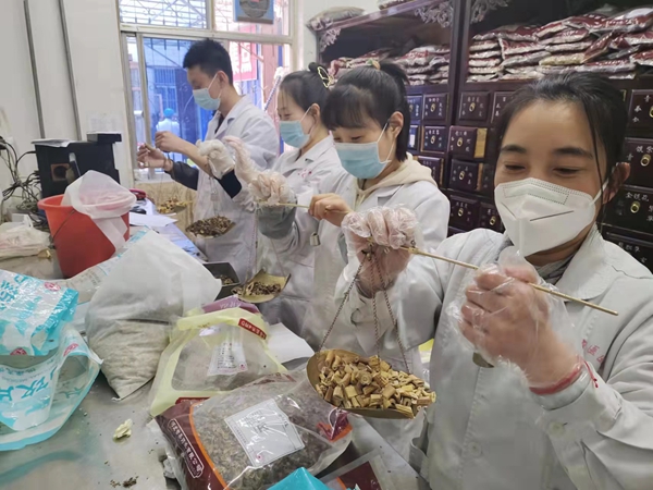 高秀英说:“中医药人要勇担疫情防控的政治责任和社会责任,不忘医者初心,在疫情防控中认真践行‘一切以人民健康为中心’的理念。”(周丽婷)