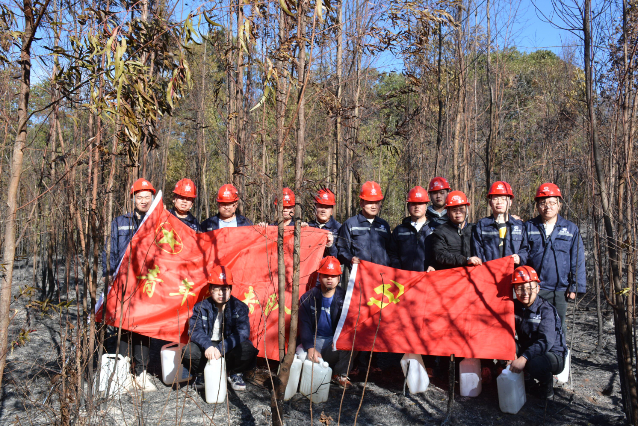 大雪之后“灾害”没有消停,仅仅过了18天,3月12日下午,项目部所处地域山林莫名燃起熊熊大火,此时正值春末夏初,正是干燥的时节,树木茂盛,火势迅速扩散,青年突击队按照项目部党支部的要求,立即组成救援队伍第一时间奔赴现场,救火的同时还带去了数十箱饮用矿泉水及应急补给食物,惠及当地政府、森林公安、消防队救援人员,杨明远说,“我们以最快的速度赶到现场扑火,通宵在山上鏖战,第二天一早进行隐患排查的时候,我看到我们很多队员是席地而睡,他们太疲倦了”