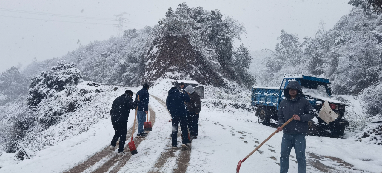 “立春半个多月,滇中下大雪匪夷所思,那两天,清除积雪成了项目部最重要的工作,”青年突击队队长杨明远说,“我们青年突击队立即对重要路口、上坡路段及楼梯等进行除雪,恰巧路遇救护车打滑,立即帮忙推行通过易滑路段,是青年突击队及时配合项目部开展应急工作,从而避免了潜在的巨大损失。”