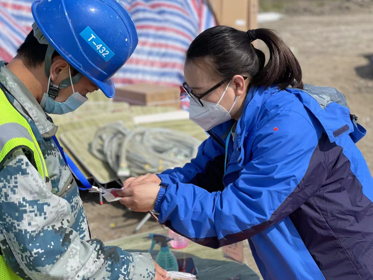 在施工现场,张向宇负责项目暖通施工,蒋荣娜是防疫专员,负责500余名建设者的健康和安全。虽然同处在一片施工场地上,两人偶遇却并不容易。直到当晚张向宇在排队做核酸时,发现正在帮工友填写信息的身影十分眼熟,虽然隔着口罩,但他还是一眼认出了妻子蒋荣娜。“你怎么会来这里?”二人面对面异口同声地问。原来,为了不让对方担心,他们都故意隐瞒了参建的消息。“不敢告诉她,她很爱操心,怕她不让我来!”张向宇说。