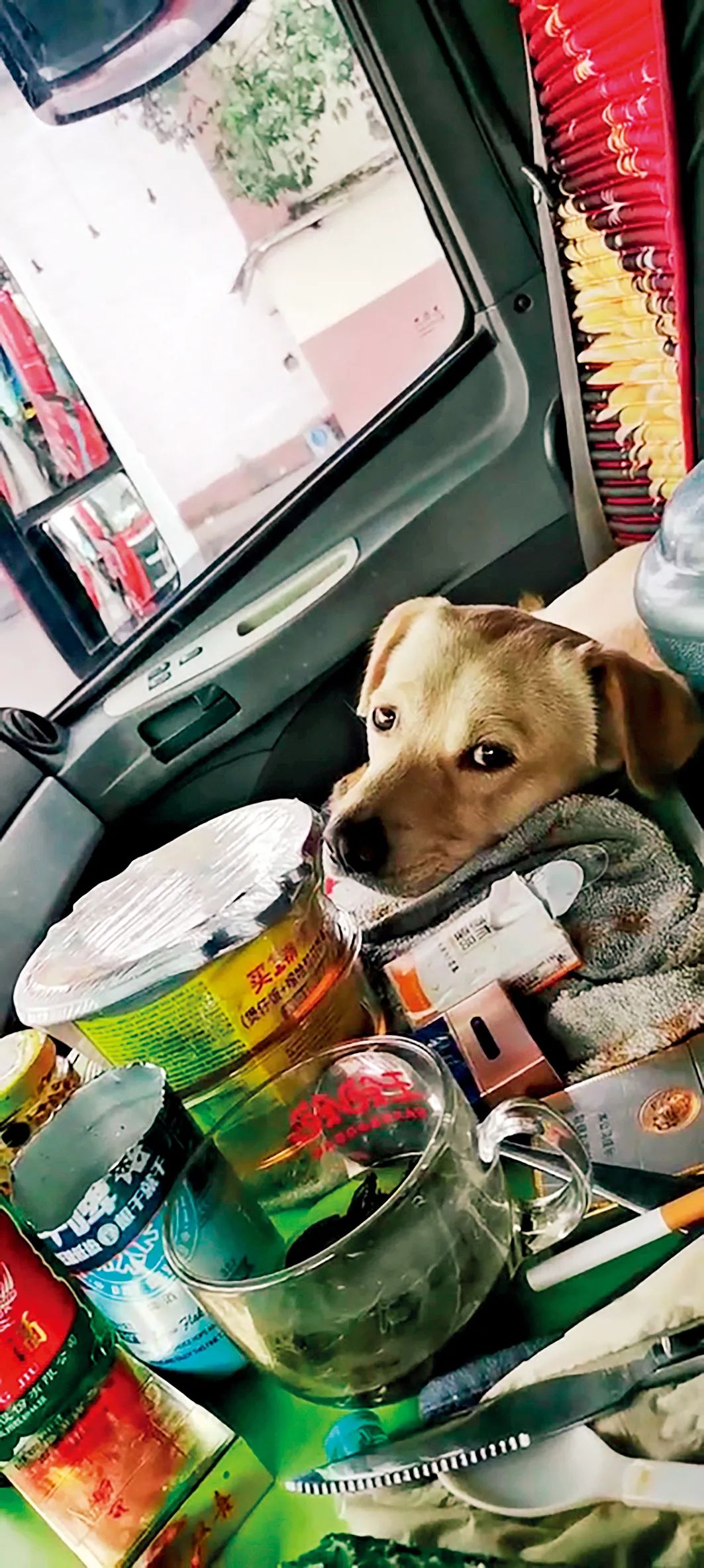 他养的一条名叫“哈密”的小狗,一直跟随他跑车。哈密以前只吃狗粮,连面包都不吃,“现在饿急了,饼干吃了,方便面也吃了。”