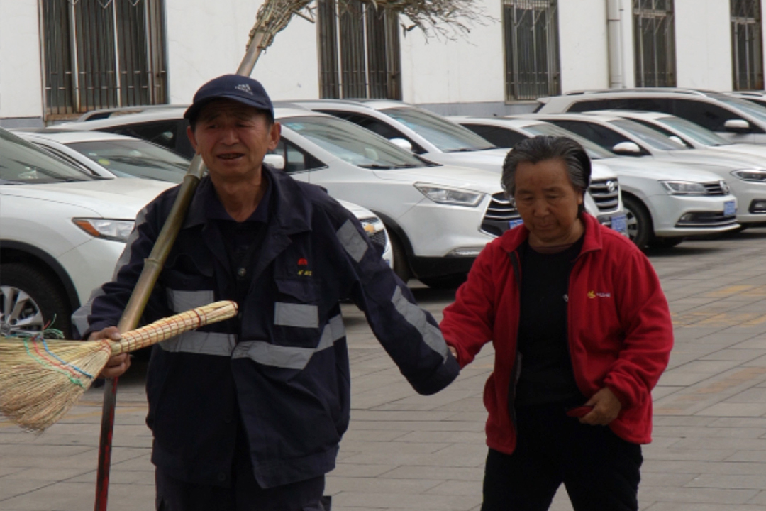 高照茹是陕煤集团黄陵矿业一号煤矿的一名环卫工。每天打扫卫生时,他手里总牵着一位反应迟钝、神情呆滞的老奶奶,那是他的妻子,小名叫绣花。