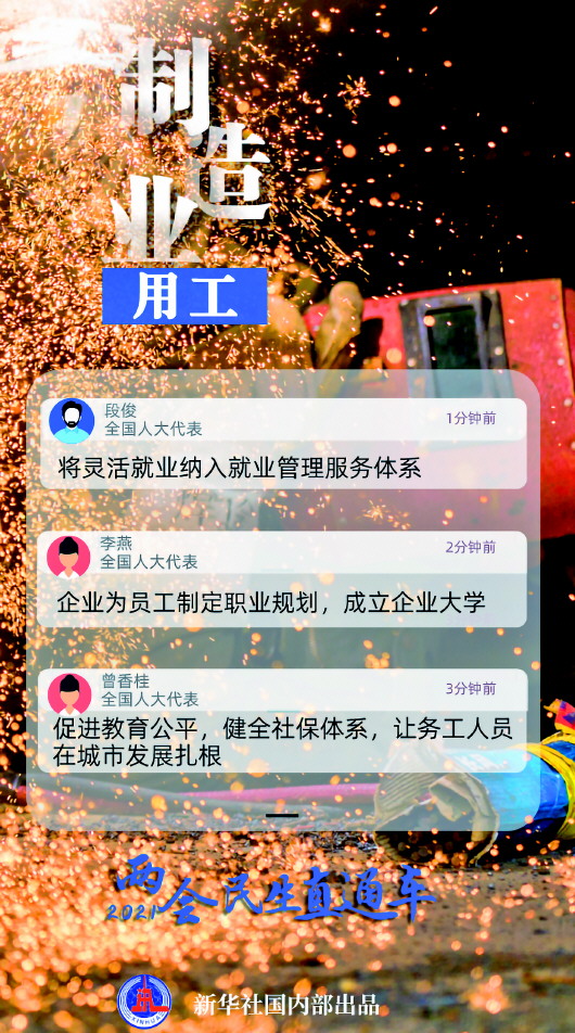代表建言:全国人大代表、农民工段俊说,政府工作报告指出,推动放开在就业地参加社会保险的户籍限制。建议尽快将灵活就业纳入就业管理服务体系,不能让劳务公司和临时工成为不缴社保的空白之地,维护临时工的合法权益。