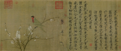 元代赵孟頫曾在徽宗的《竹禽图》旁题跋:“道君聪明无纵,其于绘事尤极神妙,动植之物无不曲尽其性,殆若天地生成,非人力所能及”。可见,徽宗花鸟画的形与色近乎天地生长,人力与造化已融于一体了。