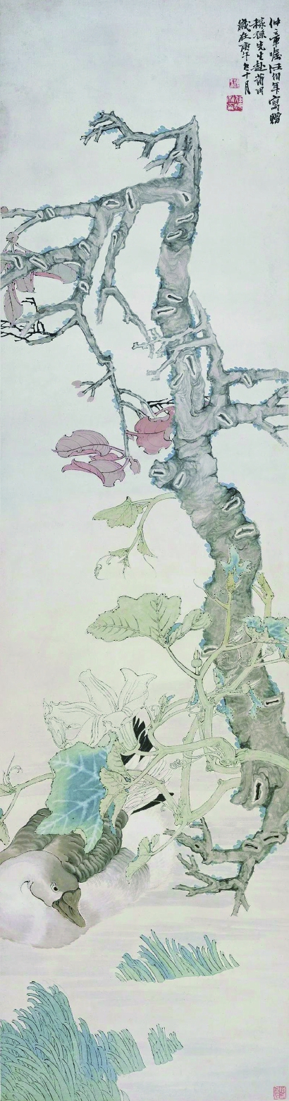 ◆晚清画家任伯年可谓海上花鸟画之旗手,图为他的《新秋鹅浴图》