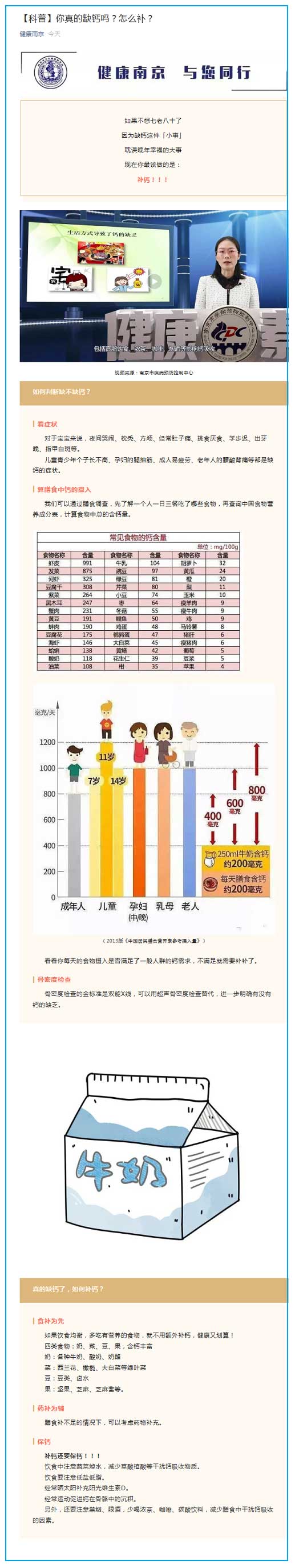 9月8日,健康南京微信公众号发布科普文章《你真的缺钙吗?怎么补?》。如何判断缺不缺钙?真的缺钙了,如何补钙? 一起来看!