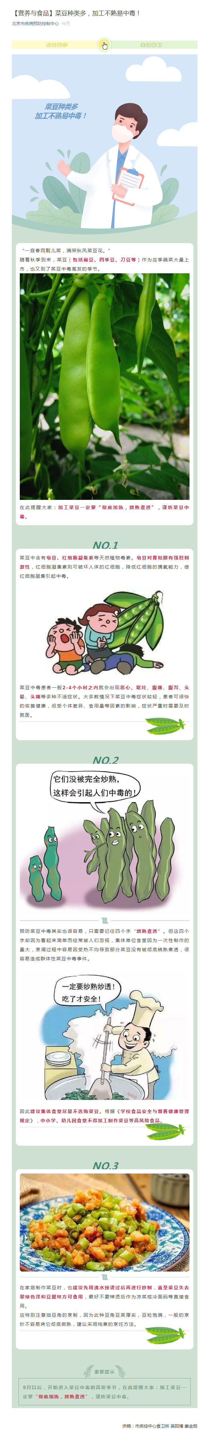 “一庭春雨瓢儿菜,满架秋风菜豆花。”随着秋季到来,菜豆(包括扁豆、四季豆、刀豆等)作为应季蔬菜大量上市,也又到了菜豆中毒高发的季节。北京市疾病预防控制中心今日发文提醒大家:加工菜豆一定要“彻底加热,烧熟煮透”,谨防菜豆中毒。