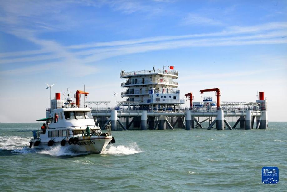 10月18日,一艘快艇从“耕海1号”海洋牧场综合体平台旁经过。“耕海1号”海洋牧场综合体平台位于山东省烟台市渔人码头以东海域,将渔业养殖、海上旅游、科技研发等功能相结合,以科技创新提升渔业养殖效率,实现海洋渔业转型升级。据介绍,“耕海1号”一期由三个养殖网箱组合而成,总养殖体积30000立方米,该平台配备自动投喂、环境监测、船舶防碰撞等系统及无人船、水下巡检机器人等技术设备,可实现生产全过程智能化控制。新华社记者 李紫恒 摄