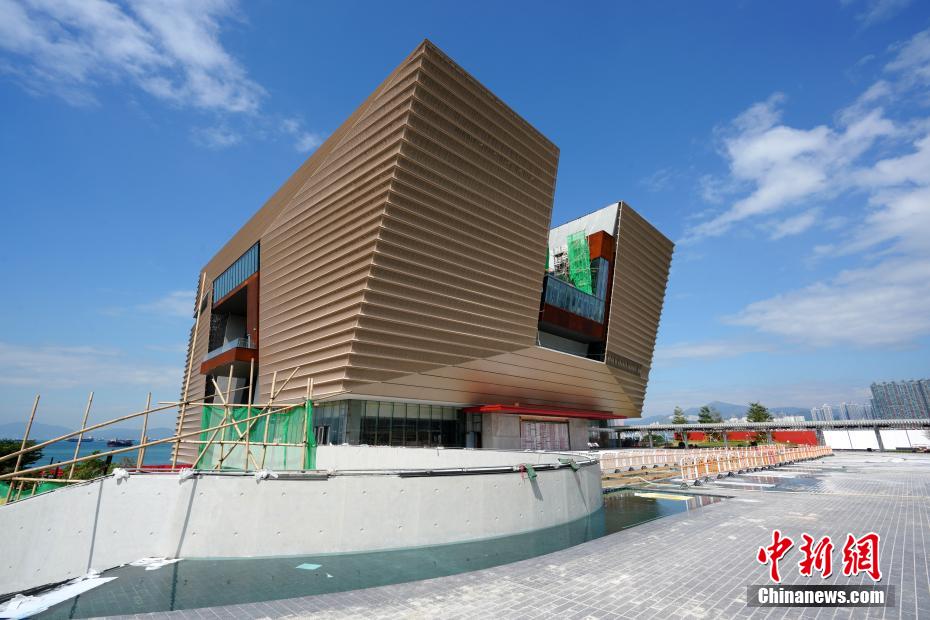 10月26日,香港故宫文化博物馆馆长吴志华向媒体记者表示,该项目得到中央的大力支持,是香港非常重要的文化项目,内部装修工程预计2022年4月完工,2022年5月进行策展工作,2022年7月将如期开幕。该项目由中国建筑国际集团承建,总建筑面积4.4万平方米,是北京故宫博物院与香港西九文化管理局合作建立的博物馆项目,为北京故宫博物院在内地以外的首个合作项目。项目建成后,将惠及740万香港居民及每年约2000万赴港国内外游客。图为空中俯瞰香港故宫文化博物馆正面。 张炜 摄