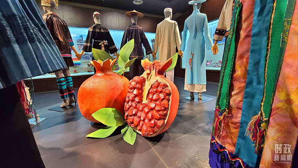 △习近平总书记曾经形容,各民族就像石榴籽一样紧紧抱在一起。这是广西民族博物馆中的主题雕塑。(总台央视记者赵化拍摄)