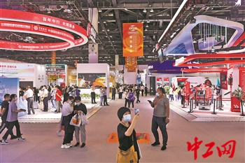 9月7日,2021年中国国际服务贸易交易会落下帷幕。图为国家会议中心展区内,观众正在国别展区参观。工人日报—中工网记者 王伟伟 摄