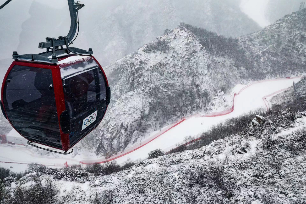 坐缆车去比赛场地。工人日报-中工网记者王伟伟摄