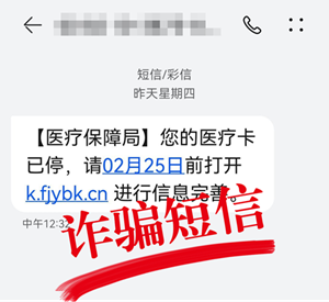 【医疗保障局】您的医疗卡已停,请02月25日前打开******进行信息完善。