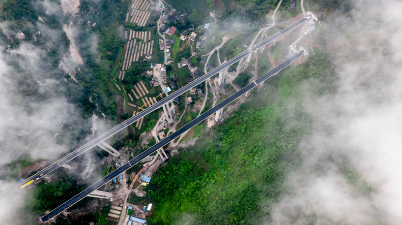 在螺旋隧道群建设过程中,宜昭高速公路施工工人穿山筑路,演绎当代愚公移山,采取堵排结合、提前预防的措施,克服了山体不良的地质发育,以及掌子面涌水、渗水、围岩等级差等重重困难,打破沟谷天堑,以360度顺时针盘旋而上的高难度方式,架起了三桥三隧,在乌蒙山之间镶嵌上一个“蝴蝶结”。