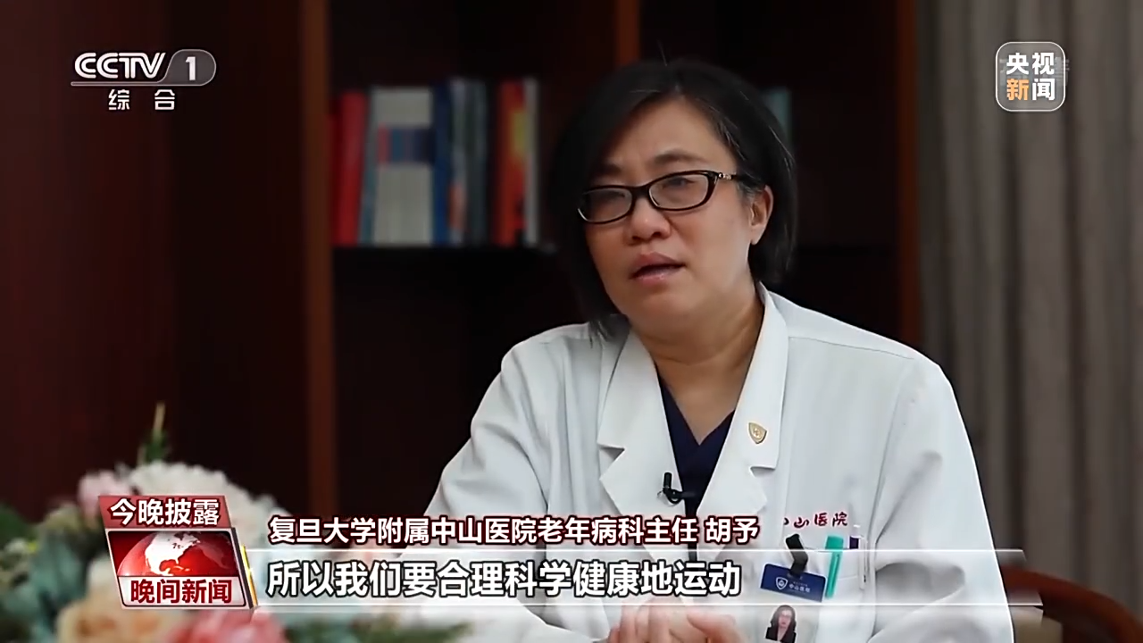 复旦大学附属中山医院老年病科主任 胡予:当然我们要预防另外一个极端,比方说每天走几万步的路,跟腱走坏掉了,膝关节走坏掉了。所以我们要合理科学健康的运动,然后要顾及心肺、负重以及平衡的锻炼。