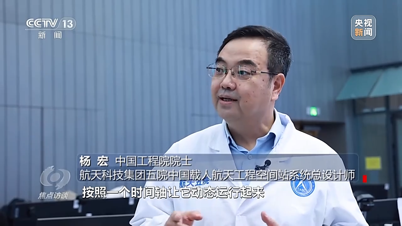 中国工程院院士、航天科技集团五院中国载人航天工程空间站系统总设计师 杨宏:我们空间站系统总体、各个总体岗位人员,都在数字空间站的工作大厅对空间站重大飞行事件进行仿真和推演。