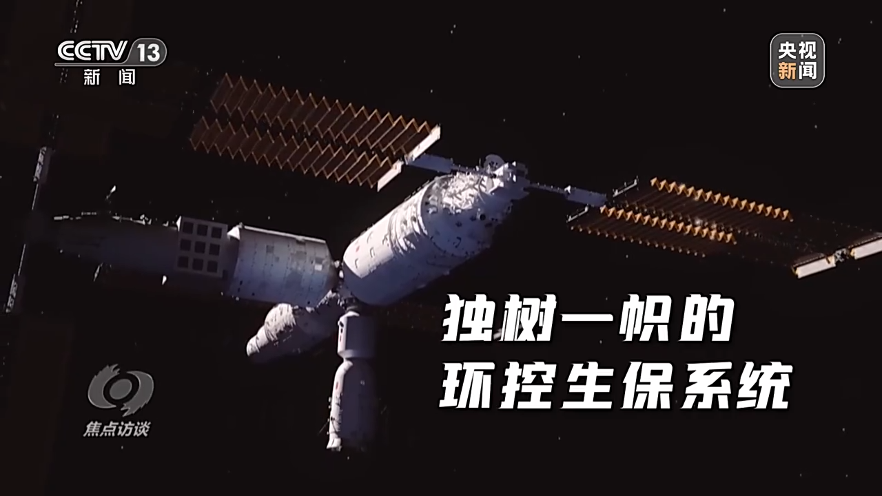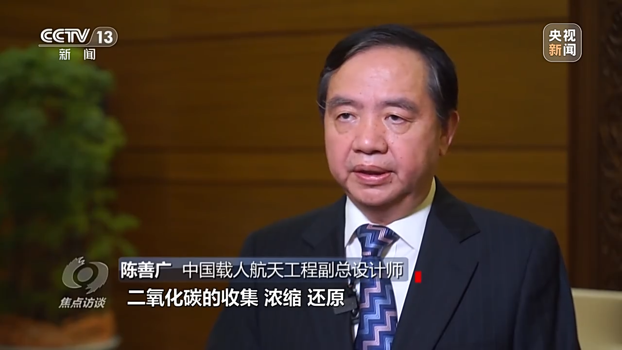 中国载人航天工程副总设计师 陈善广:里面包括水的再生,氧气的再生,二氧化碳的收集、浓缩、还原,一系列物理化学的再生生保系统,在中国空间站里我们几乎是一次完成的,特别是我们在尿处理、水处理方面,已经部分达到了国际领先水平。