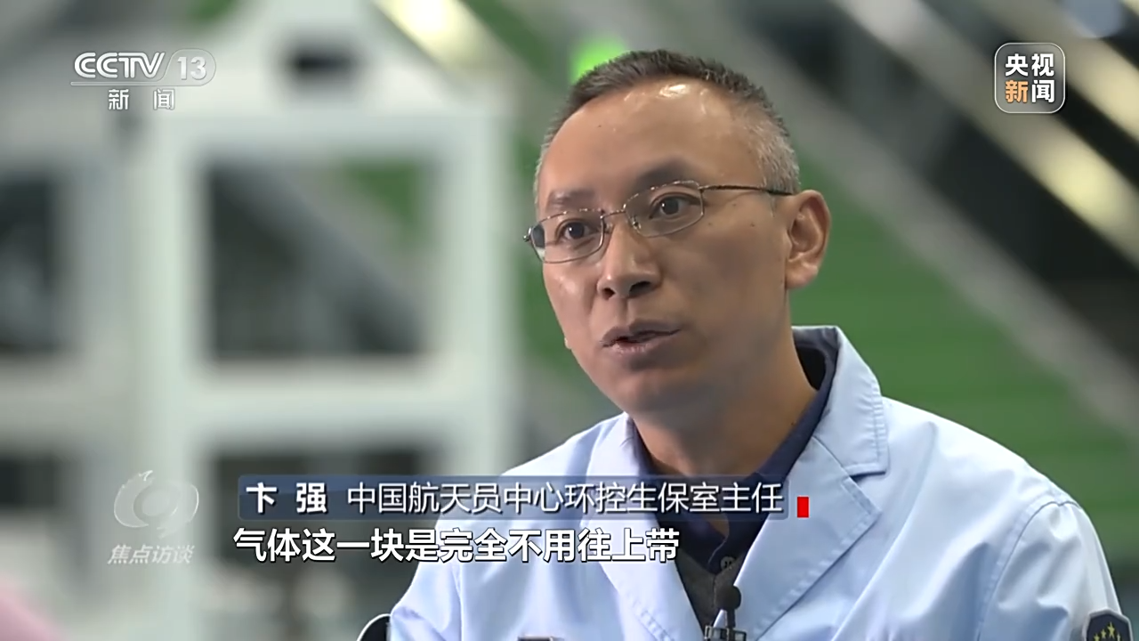 中国航天员中心环控生保室主任 卞强:实际在轨运行的物质闭合度,气体是百分之百。气体完全不用往上带,只带一些应急的备用的资源上去,我们的目标是实现空间站水资源的自给自足。