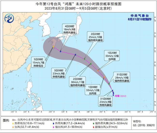 预计,“鸿雁”将以每小时25-30公里的速度向北偏西方向移动,强度逐渐增强。