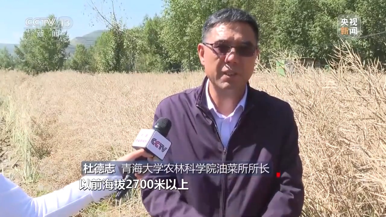 青海大学农林科学院油菜所所长 杜德志:以前海拔2700米以上种当地白菜型小油菜,产量比较低,大概200斤一亩地。海拔2700米以下主要种加拿大引进的甘蓝型油菜品种,产量也不高,就300多斤。