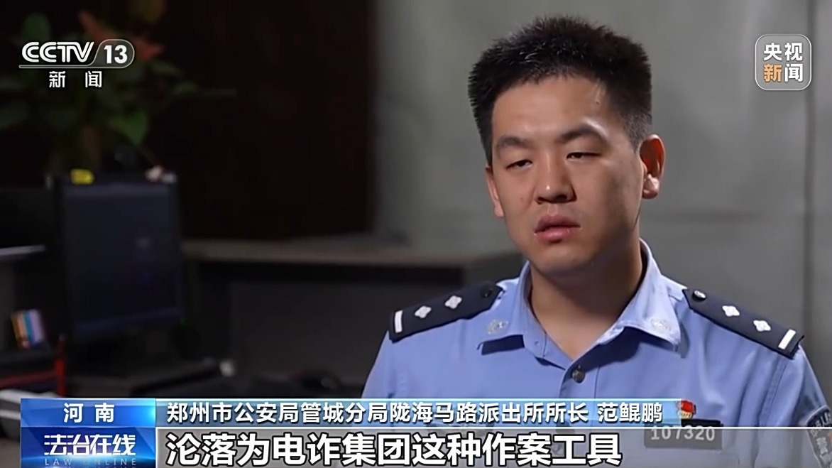 郑州市公安局管城分局陇海马路派出所所长 范鲲鹏:把自己的个人信息出售给别人,然后让犯罪分子有机可乘、有利可图,利用个人的银行卡,然后进行电诈集团洗钱漂白,沦落为电诈集团这种作案工具。