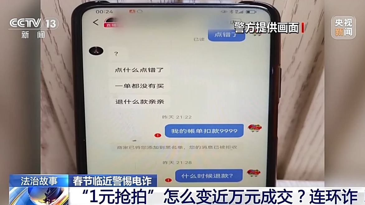 假期一到,很多年轻人会趁着空闲时间上网购物消费。如果看到“抢拍”这样的商品,可不要太冲动,说不定这就是个陷阱。家住江苏常州的张先生就在直播购物中遭遇了诈骗,说好“1元抢拍”的商品,在付款时却变成了9999元,不仅被骗了近万元不说,后面还有连环陷阱等着他。