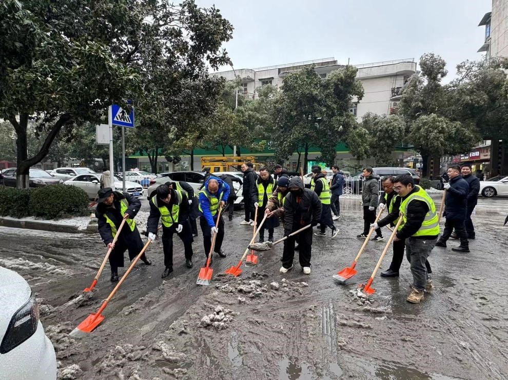原标题:在汉职工志愿铲雪除冰助力居民安全出行
