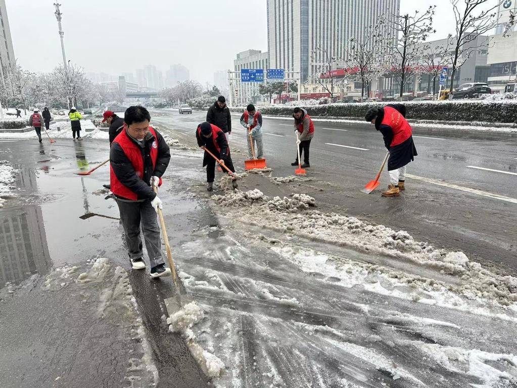 近日,由中建三局一公司中南公司机关、临空港创新中心项目、赛宝项目近20名管理人员组成的铲雪志愿服务队到东吴大道沿线清除路面积雪,经过近4个小时的奋战,中南公司志愿服务队铲除了超过3公里的路面积雪,确保了道路畅通,为附近居民安全出行保驾护航。