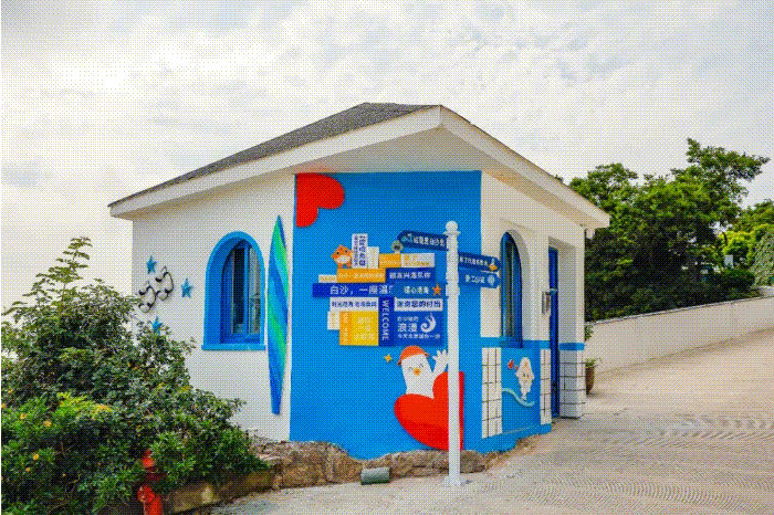 建筑外观融入了“白沙岛系列IP”项目,墙上由海鸥、虎头鱼、灯塔、鹅卵石组合而成,通过刷脸或身份证进入到阵地内,屋内空调、冰箱、直饮水、电视机、充电设备、书籍、急救箱等设施设备一应俱全,俨然是个温馨舒适的“小家”。