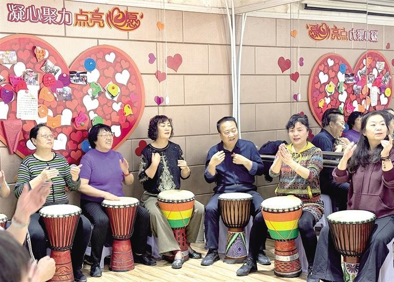 “停不下来,根本停不下来!”5月20日,如同每个周一下午一样,焦家湾东社区老年大学里的非洲鼓课程正在欢乐地进行中。