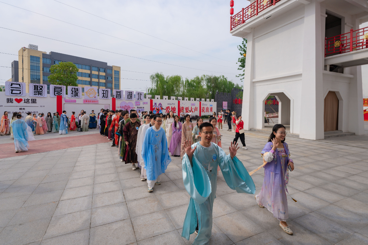 在湖北宜昌高新区,国潮汉服秀精彩上演;在湖北襄阳古隆中,“孔明月英”赠祝福;在十堰张湾,心动游园会浪漫开启;在荆州沙市,爱与音乐的主题联谊甜蜜进行……5月18日,湖北省工会“会聚良缘·知音湖北”交友活动在湖北四城同步举行,宜昌设主会场,襄阳、十堰、荆州设分会场,吸引了全省千余名单身职工参加,近万人观看线上直播。