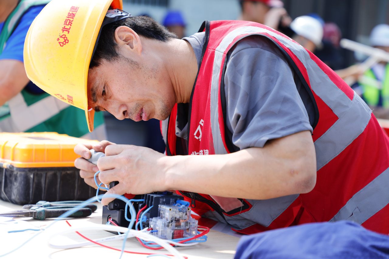 各工种参赛选手精神饱满,动作娴熟。每个环节都能看出高标准、高效率、高质量,可见大家在日常工作中,不仅把建筑行业最基本、最关键的基础技能打牢,也在不断实践中摸索经验创新方法,提升了实践能力和职业素养。“按工程图纸操作、选择规格合适的材料、执行操作流程,这些是完成每项工作的基础。”“扎实的基本功是我们拼手速的法宝,只有千百次的练习才能得心应手。”“别小看拧个螺母、排个导线、绑个钢筋,朝向、顺序、美观都要兼顾,这可以说是一门艺术,建筑美融合着工人力量与智慧结晶。”台上切磋技艺、台下分享经验,呈现出“咱们工人有力量”的火热氛围,每个建筑师傅都在全力以赴,不难看出他们在配合整体施工作业,保质保量保工期中付出的努力,成为怀柔建筑行业发展进程中强有力的代言。