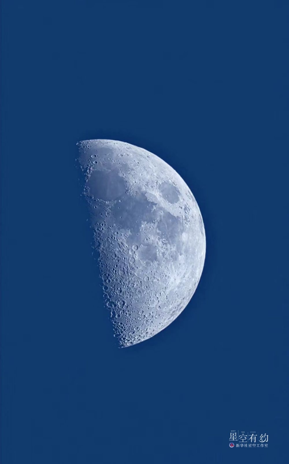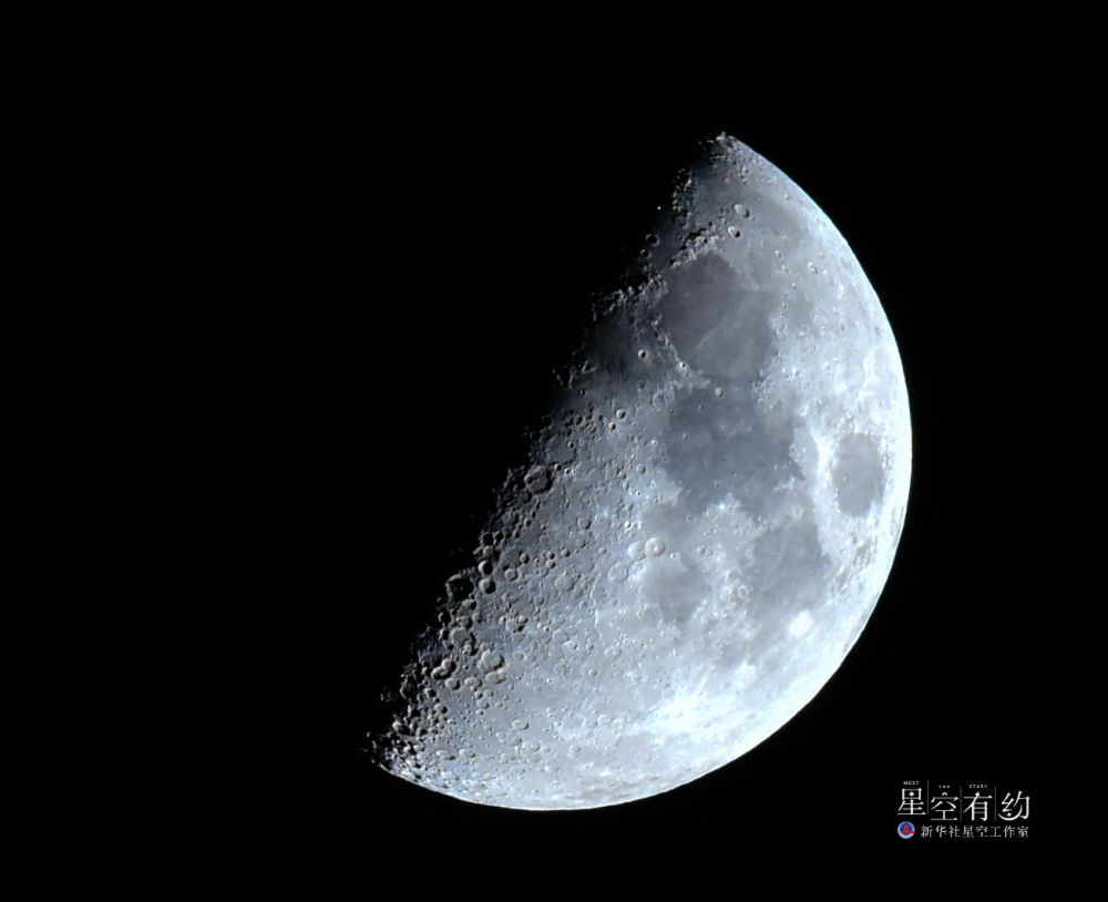 这是2024年3月17日在北京丰台区拍摄的一轮上弦月(特写)。(星空摄影师王俊峰拍摄)