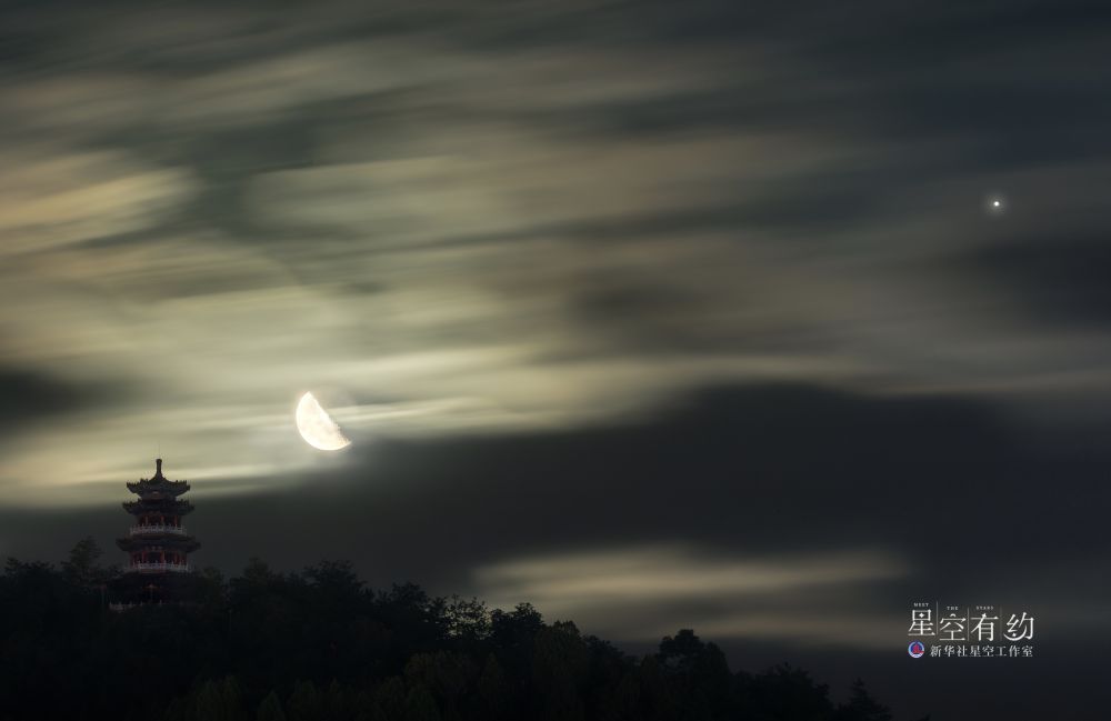 星空摄影师鲁罡2023年8月9日凌晨在甘肃陇南拍摄的木星伴下弦月。(星联CSVA供图)