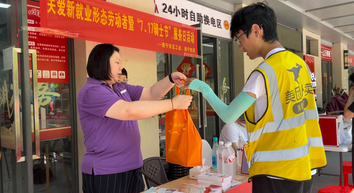 原标题:广西南宁市总工会开展关爱新就业形态劳动者暨“7.17骑士节”服务日活动