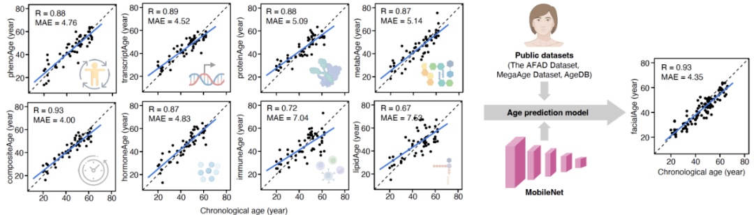 不只是这些表面的指标,研究人员从激素、基因表达以及代谢等方面,也绘制了衰老的相关指标,结果发现无论是激素变化还是蛋白或者免疫方面,都呈现了明显地随着年龄的改变,相关性很高。这些意味着,我们的衰老并不是某个时间段才开始的,而是一个很早就开始的持续过程。