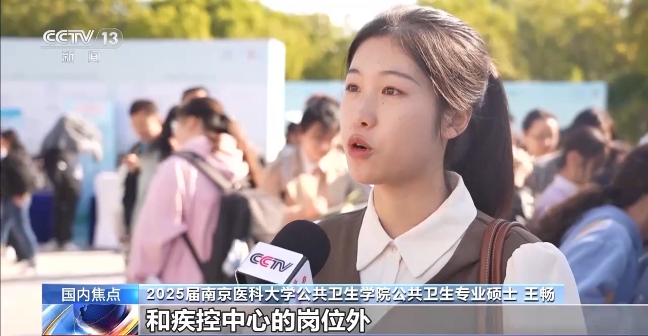 2025届南京医科大学公共卫生学院公共卫生专业型硕士 王畅:我发现除了很多大医院和疾控中心的岗位外,也有很多基层的社区医院在招人。因为我学的专业是公共卫生,以后在未来的岗位中,我可以在基层多多积累经验,这样更贴近群众,了解他们真实的健康需求。