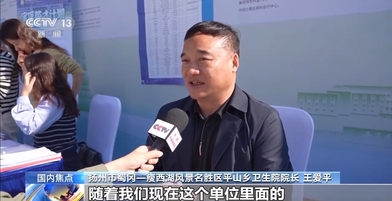 江苏省扬州市蜀冈—瘦西湖风景名胜区平山乡卫生院院长 王爱平:随着我们现在单位里硬件环境设施的改变和大学生就业的理念更新了,他们现在也愿意到我们基层单位来,我们为他们提供全周期的培训,今年我们招聘了六名应届毕业生。