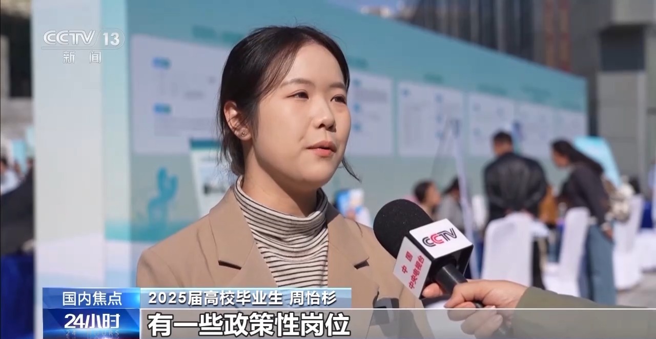 2025届高校毕业生 周怡杉:我们还跟学院的老师了解到有一些政策性岗位,比如说常见的“三支一扶”“西部计划”,我自己也是想要尝试的。因为我觉得我们现在就业不一定非常瞄准北上广深这些大城市,我们先下基层锻炼几年,我觉得也是很好的。
