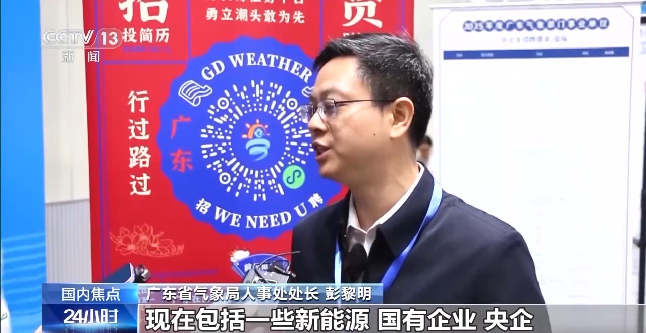 广东省气象局人事处处长 彭黎明:气象类的适应面很广,除了我们气象部门的就业需求,现在包括一些新能源、国有企业,央企,他们也很热门去招收大气科学的硕士及以上的毕业生。