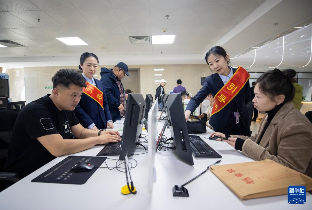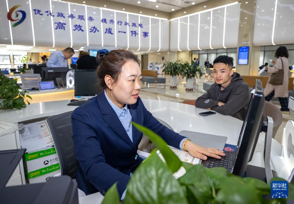 3月21日,在银川市审批服务管理局企业服务大厅,工作人员引导办事人员使用宁夏企业开办“一网通办”服务平台办理业务。新华社记者 杨植森 摄