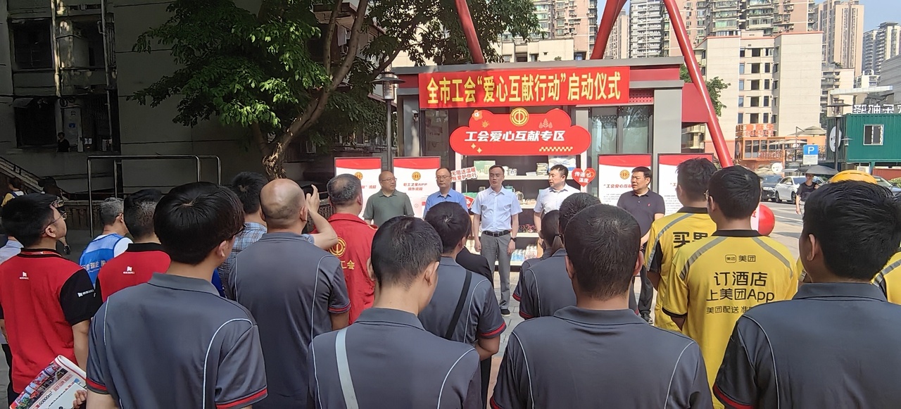当天,重庆市总工会正式启动“工会爱心互献”行动。全市各区县总工会、相关市级产业工会依托职工服务中心、工会驿站等阵地平台,开辟设置“工会爱心互献专区”,组织爱心企业(人士)赞助和职工会员捐赠小电器、充电宝、雨伞、水杯、矿泉水、防晒用品、防暑降温药品等物品,为农民工、新业态群体等户外劳动者提供日常工作所需物品与关爱帮助。