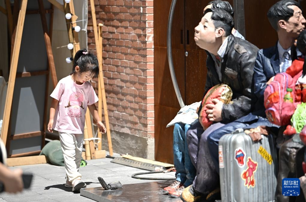 7月13日,小朋友在天美艺术街区游玩。新华社记者 李然 摄