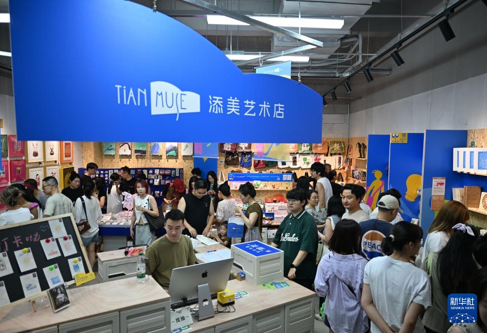市民在天美艺术街区内的一家艺术店挑选商品(7月12日摄)。新华社记者 孙凡越 摄