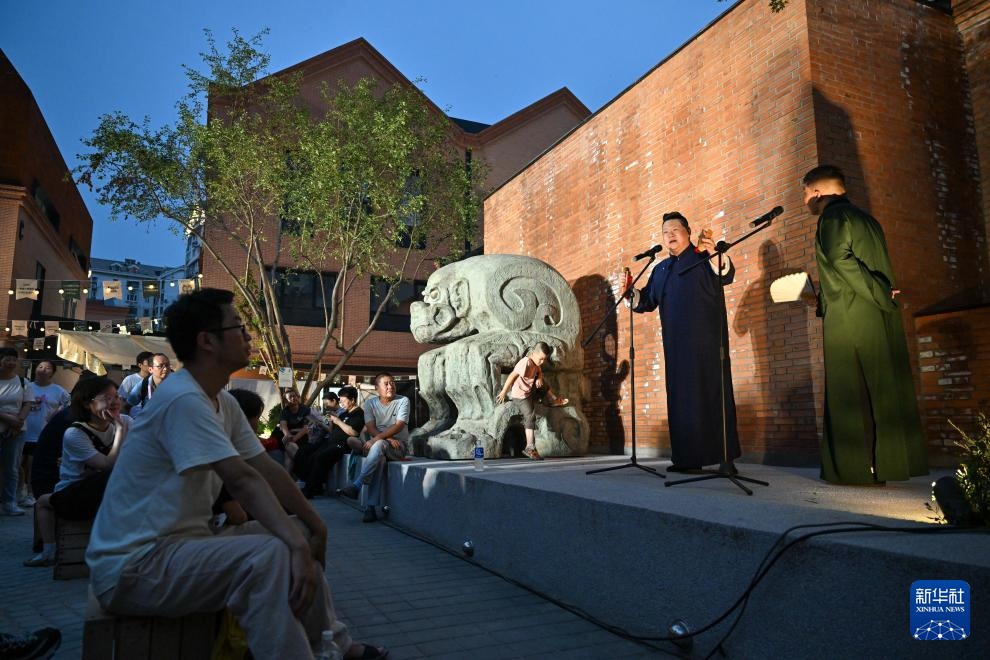 相声演员在天美艺术街区露天空间为市民表演(7月12日摄)。新华社记者 孙凡越 摄