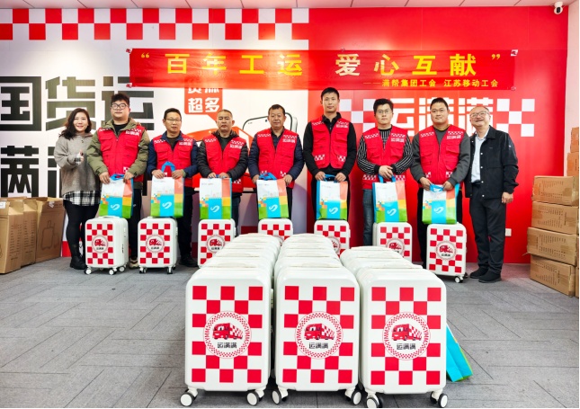 近日,江苏省南京市栖霞区金宝汽摩配件城内暖意融融,满帮集团工会与中国移动江苏公司工会联合举办“百年工运 爱心互献”志愿者活动,为100余名奔波在外的货车司机送上包含保温杯、雨伞、雨披、行李箱等旅途必备品的暖“新”大礼包,以实际行动传承百年工运精神,筑牢新就业形态劳动者权益保障防线。